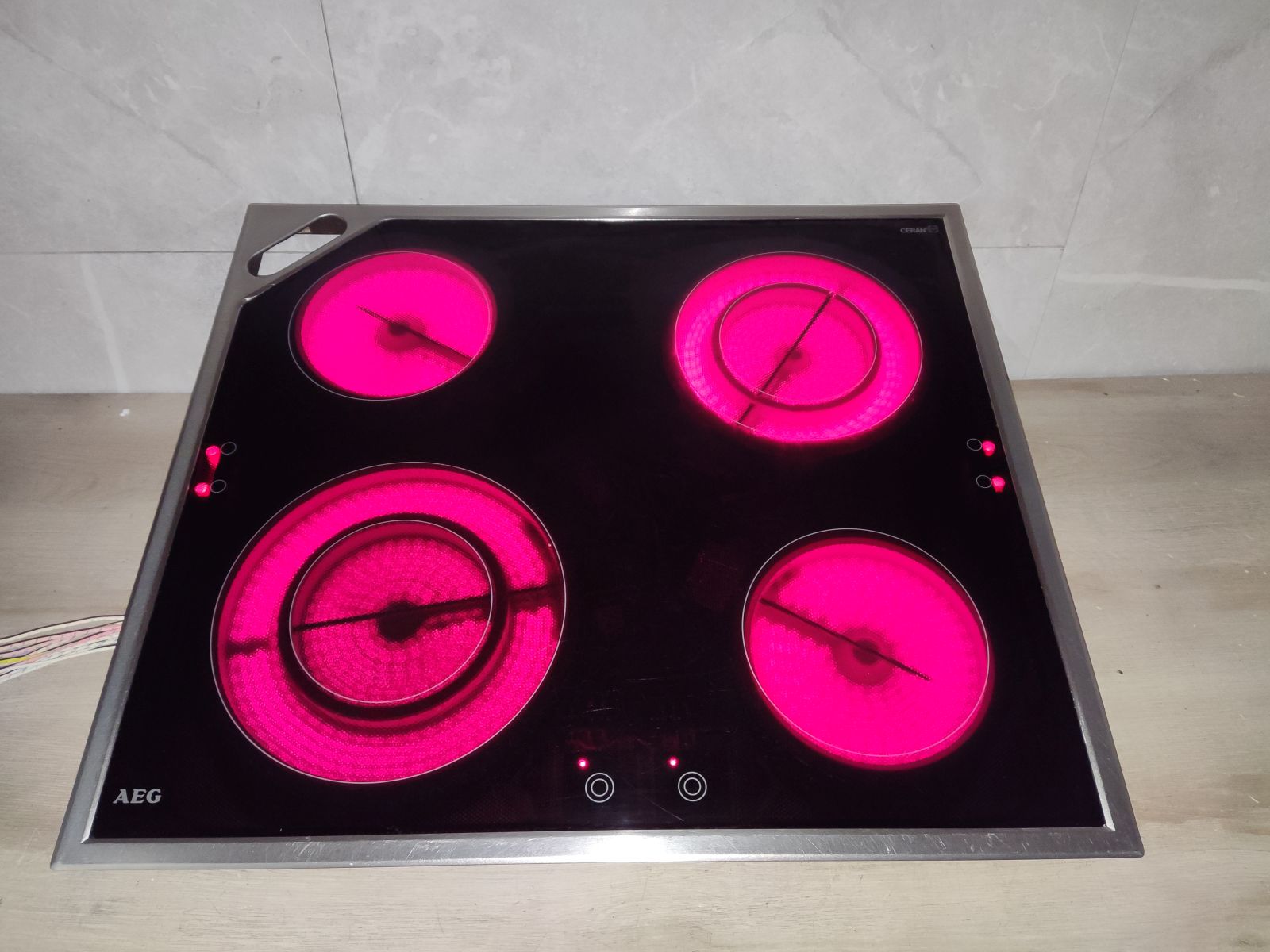 (neues selbstklebendes Dichtband) Original Halteklemmen komplett Edelstahlrahmen Leistungsstarke EGO HiLight Heizelemente. Zwei mal Zweikreiszonen Erweiterungen werden am Kochfeld via EGO Sensoren aufgeschaltet. (Original Erstausrüster Bestückung) Das Kochfeld wurde in Deutschland Hergestellt und nach der Erstauslieferung sachgemäß genutzt, (wir haben alle Teile für all unsere angebotenen Kochfelder mehrfach am Lager und können immer sofort agieren) Leistungsaufnahme :6300Watt Außenmaße : 57,5cm x 50,5cm