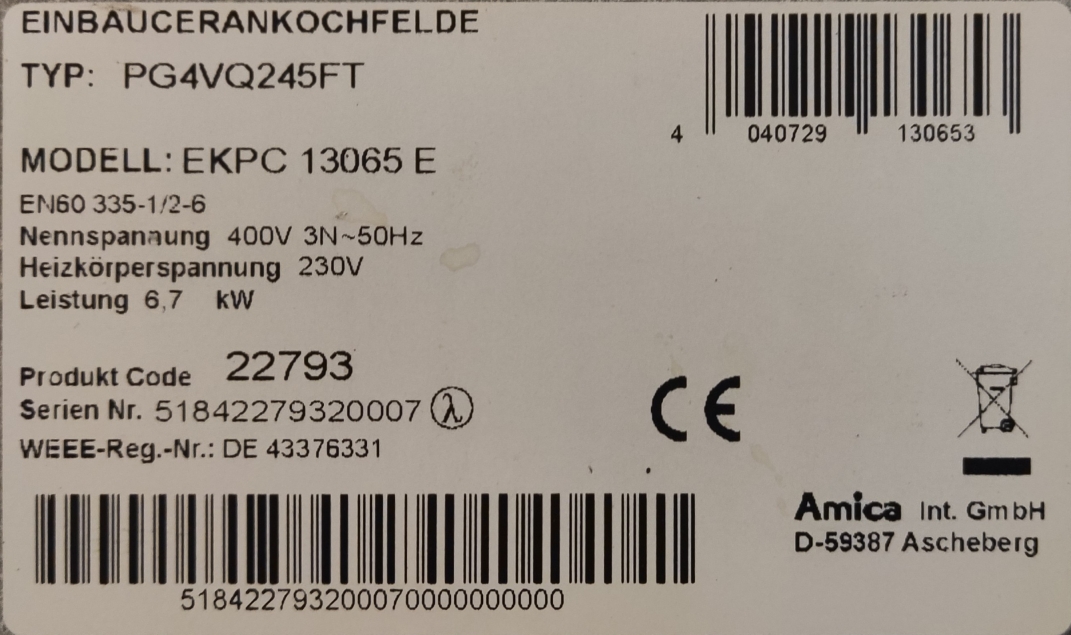 Amica PG4VQ245FT Autark TouchControl Sensor Kochfeld EKPC13065. 2Jahre Garantie