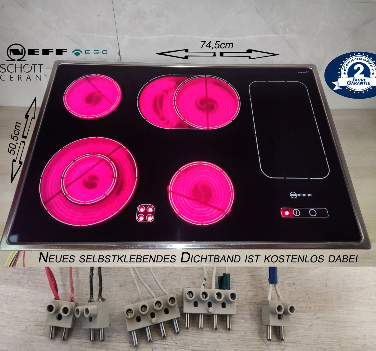 und nach der Erstauslieferung sachgemäß genutzt. Es hat geringe,nutzungstypische Gebrauchsspuren. Alle Funktionen sind uneingeschränkt in Ordnung. (Siehe bitte gesamte Bilderdokumentation) ![]() Inklusive 2Jahren Garantie (wir haben alle Teile für all unsere angebotenen Kochfelder mehrfach am Lager und können immer sofort agieren) Leistungsaufnahme :6850Watt